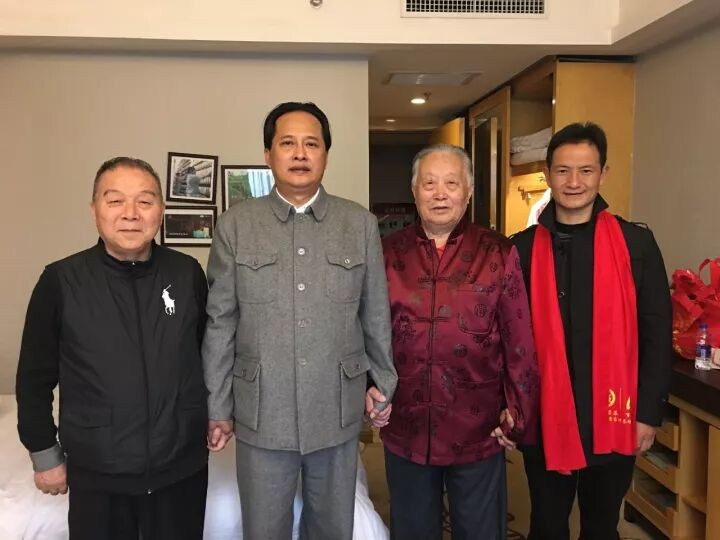 周福明老人(右二) 与扮演毛主席的特型演员在安化